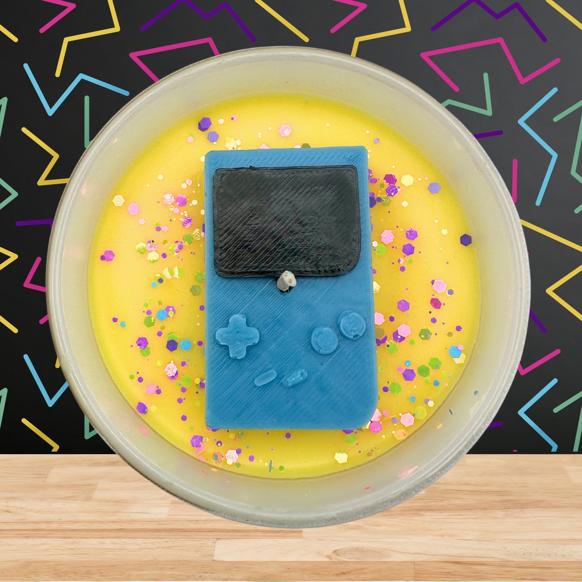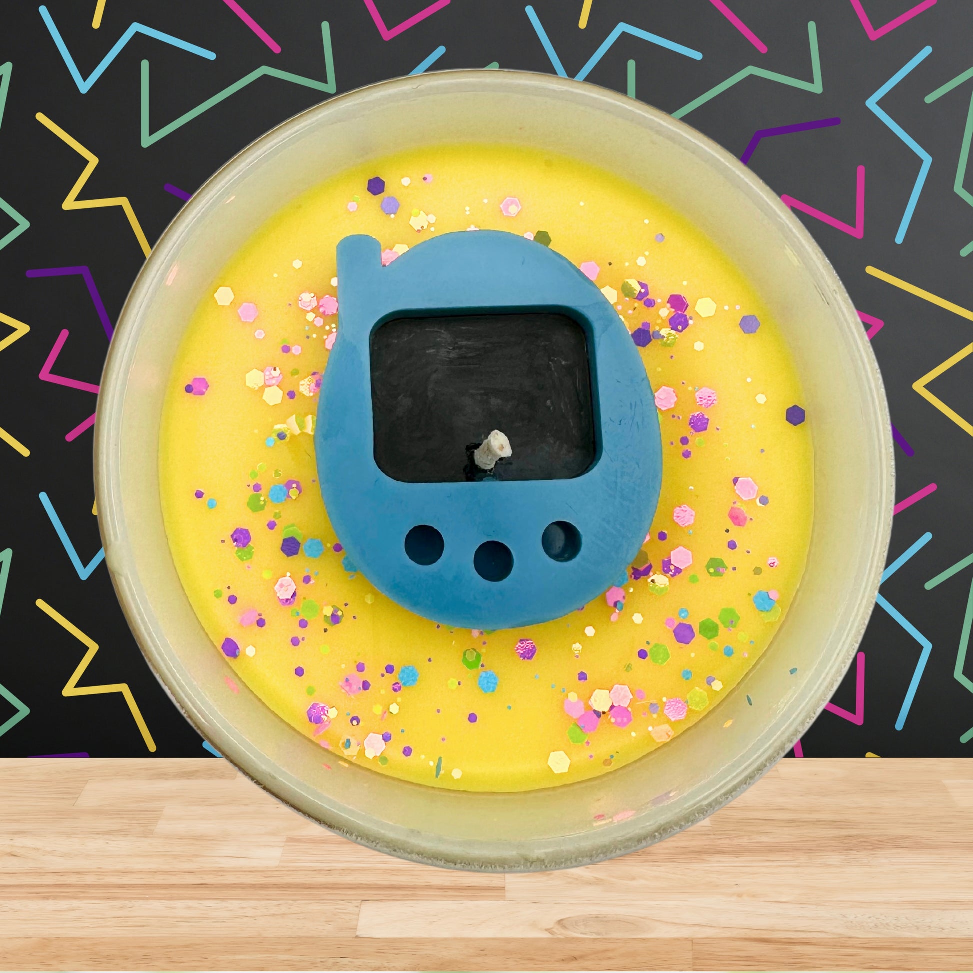 This candle is perfect for the 90s babies! This is a super nostalgic and fun fragrance that smells just like a 90s mall - “Millennial Melon” AKA Cucumber Melon, a staple 90s scent. Also pick your choice of tech on top - a gaming console or a virtual pet game!
