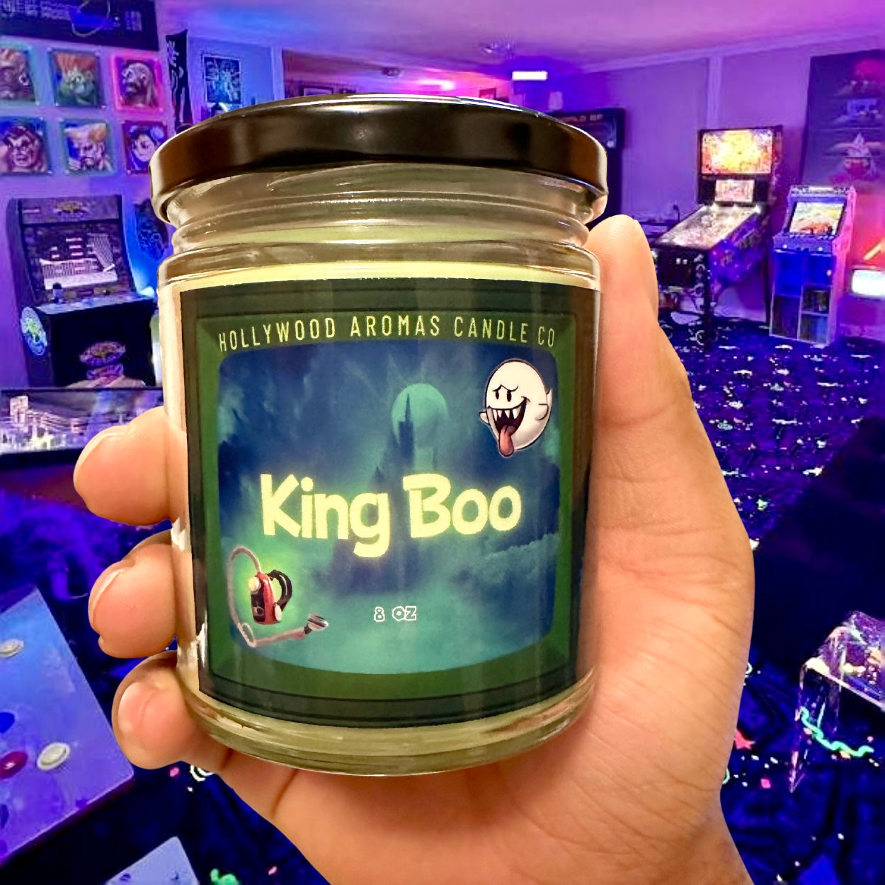 "Nononononono! M-M-M-M-Mario!" This candle puts you right into a ghost-busting mission with Luigi and Polterpup. It smells like a ghostly Green Apple haunt. And look out for King Boo!