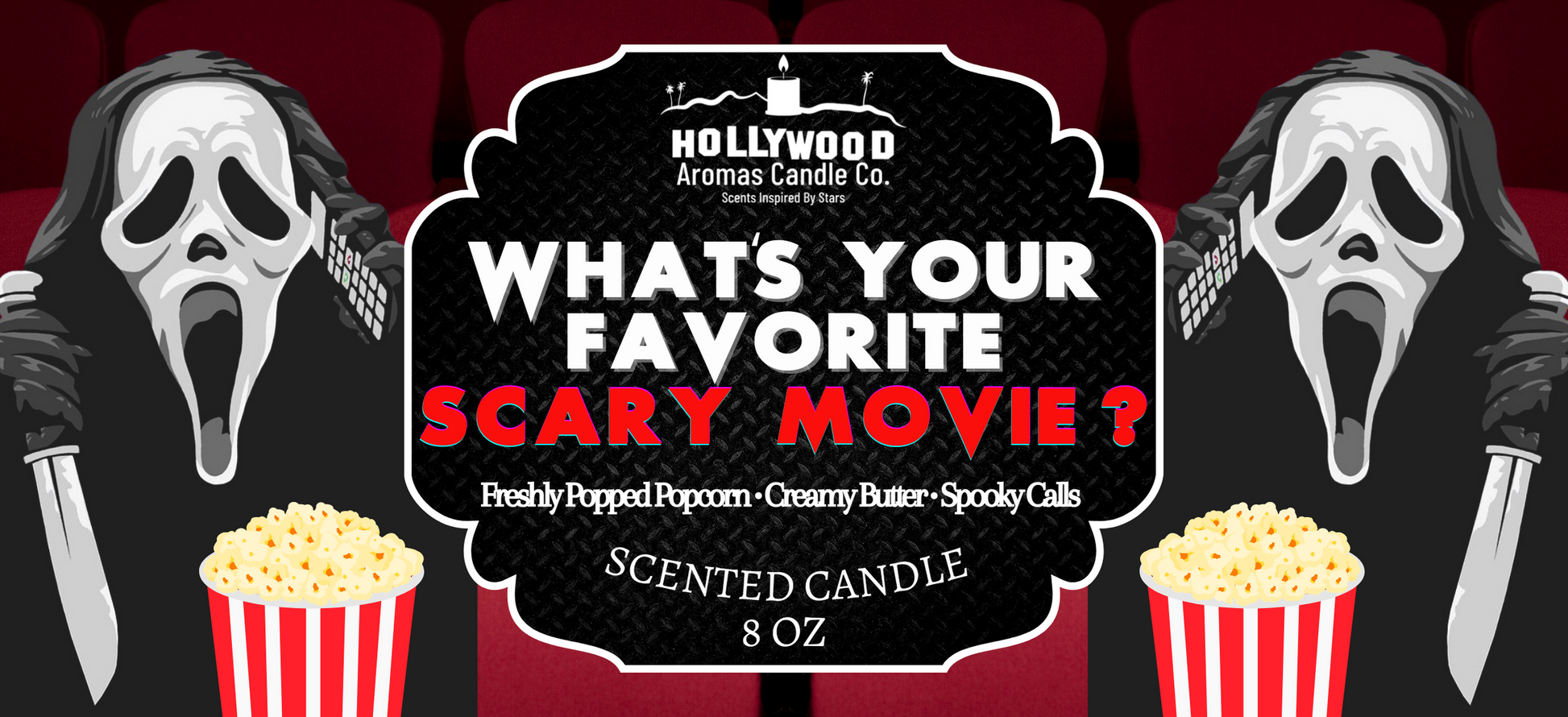 “What’s your favorite scary movie?” This spooky candle smells just like buttered popcorn🍿 fresh out of the movie theater. With notes of Freshly Popped Popcorn, Creamy Butter, and Spooky Calls - this candle is sure to take a stab🔪 at your heart and fill your home with a delicious buttery aroma.✨